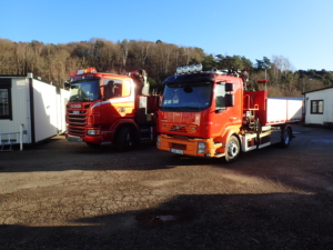 Vi har två kranbilar för transport vid försäljning eller uthyrning, men även andra transporter.